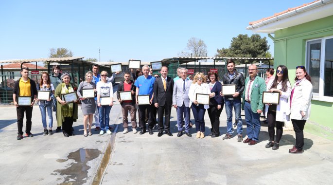 Edirne Belediyesi Sokak Hayvanları Barınağı’nda gerçekleştirilen sertifika törenine Edirne Belediye Başkanı Recep Gürkan, Belediye Başkan Yardımcısı Dr. Ertuğrul Tanrıkulu, Edirne Orman Su İşleri Şube Müdürü Ahmet Kara, kursiyerler ve hayvanseverler katıldı.