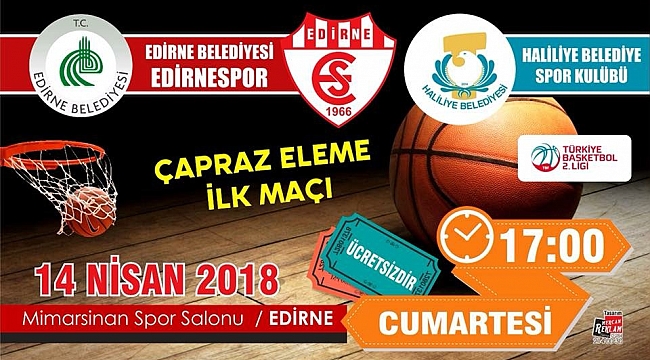 14 Nisan Cumartesi Günü Saat: 17.00’de Mimar Sinan Spor Salonu’nda Haliliye Belediyesi ile ilk maçını yapacak olan Edirne Belediyesi Edirne Spor Erkek Basketbol Takımı, 3 maçtan 2’sini kazanması halinde son 8’e kalacak.