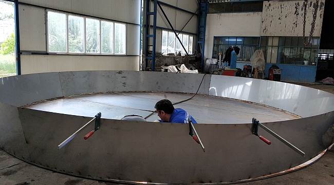 ‘Dünyanın en büyük tavası’ Edirne Belediyesi Fen İşleri Müdürlüğü tarafından; Karaağaç Yolu üzerindeki boş alana 12x12 çapında dökülen beton zemin üzerine oturtulacak.